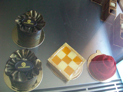 They also have ice cream! We don't get much ice cream here, at least not any that is worth mentioning. This is gelato quality. We had blueberry, yum! They package everything in pink and brown wrappings, which if you know me, delights me most of all. I am amassing a stash of pink and brown bags and boxes for who knows what. But I can't get rid of them! They're too pretty!